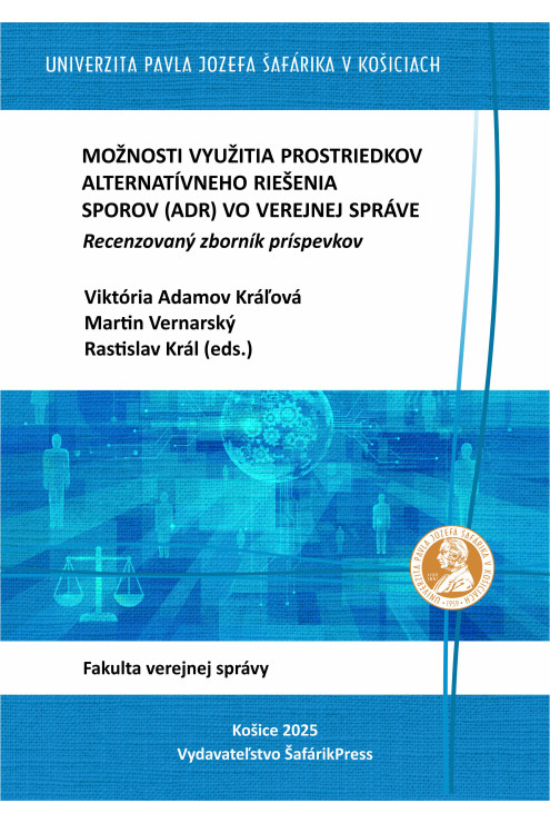 This collection of papers from a scientific conference brings together different perspectives on issues related to the use of alternative dispute resolution methods in public administration. The dominant thematic focus of the contributions was to examine the potential of alternative dispute resolution methods in protecting the public interest on the one hand, and the subjective rights of natural persons and legal entities in the exercise of public administration on the other. The collection provides a space for researchers working on this topic to present the results of their research to date and compare them with the reality of administrative dispute resolution. The combination of a theoretical approach with practical experience significantly contributes to the improvement of the scientific work of the project researchers, while also enriching practitioners with the diversity and innovativeness of theoretical perspectives on their established practice.