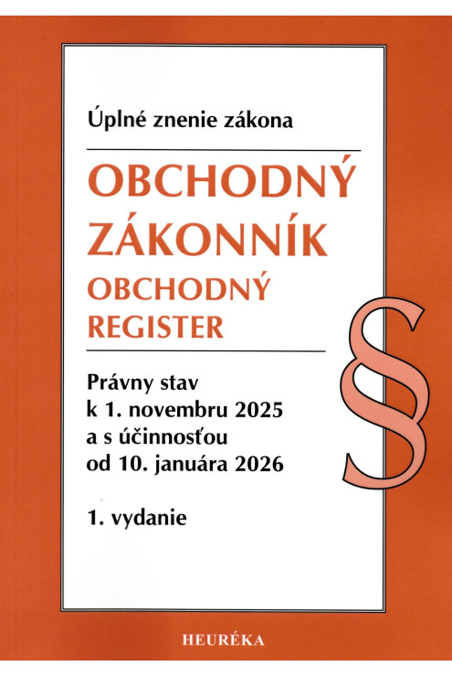 Publikácia obsahuje aktualizované úplné znenie Obchodného zákonníka č. 513/1991 Zb. a zákona č. 530/2003 Z. z. o obchodnom registri s právnym stavom k 1. novembru 2025, so zmenami poslednej novelizácie zákona č. 240/2025 Z. z. a zákona č. 187/2025 Z.z. s účinnosťou od 10. januára 2025