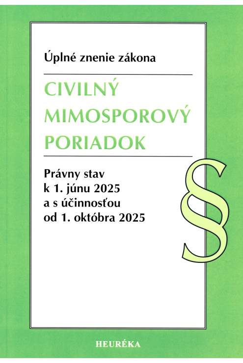 Publikácia obsahuje aktualizované úplné znenie zákona č. 161/2015 Z.z. Civilného mimosporového poriadku s právnym stavom k 1. júnu 2025 v znení zmien zákona č. 298/2024 Z. z. a s účinnosťou od 1. októbra 2025, s výraznenými zmenami poslednej novelizácie zákona č. 309/2023 Z. z.