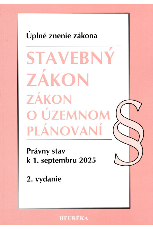 Publikácia obsahuje aktualizované úplné znenie Katastrálneho zákona č. 162/1995 Z.z. s právnym stavom k 1. septembru 2025 , so zmenami poslednej novelizácie zákona č. 46/2024 Z. z. s účinnosťou od 1. apríla 2024, zákona č. 142/2024 Z.z. s účinnosťou od 27. júna 2024 a zákona č. 26/2025 Z.z. s účinnosťou od 1. apríla 2025.