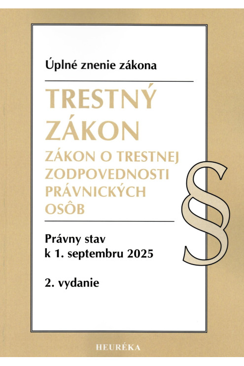 Publikácia obsahujúca najdôležitejšie právne predpisy z oblasti trestného práva, exekúcii, správneho práva a riešenia súdnych sporov je učená právnikom, policajtom, podnikateľom, exekútorom, osobách, ktoré riešia súdne spory a tiež študentom vysokých škôl a policajných akadémii. Všetky právne predpisy obsahujú zmeny k 1. 1. 2025. Trestné právo je jedno z odvetvia verejného práva. Poskytuje ochranu spoločenským záujmom uvedeným v Trestnom zákone pred protiprávnymi konaniami tým, že určuje, čo je trestným činom, vymedzuje podmienky a predpoklady trestnej zodpovednosti, ustanovuje tresty a ochranné opatrenia a vedie subjekty k plneniu zákonných povinností a zachovaniu pravidiel spolužitia.